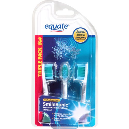 EQUATE PROFESSIONAL CLEAN SMILESONIC REPLACEMENT BRUSH HEADS, TRIPLE PACK, STANDARD, COMPARE TO PHILIPS SONICARE PRORESULTS REPLACEMENT BRUSH HEADS
