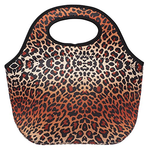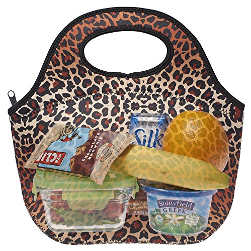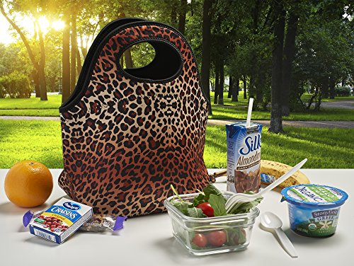 Neoprene Lunch Bag, Insulated Reusable Fashionable Lunch Box Tote | Holds More and Insulates Better | Large [12.5" x 12" x 8"] | Leopard Print by SWEET CONCEPTS