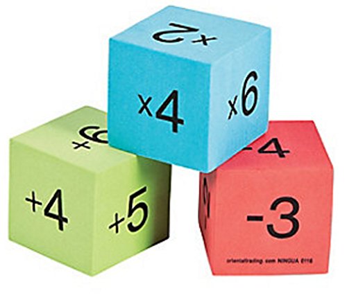 Product Description Set of 12 operations dice, include addition, subtraction and multiplication. Use with any numbered dice. Roll the operations dice and figure out the answer. Great for practicing mental math! 0