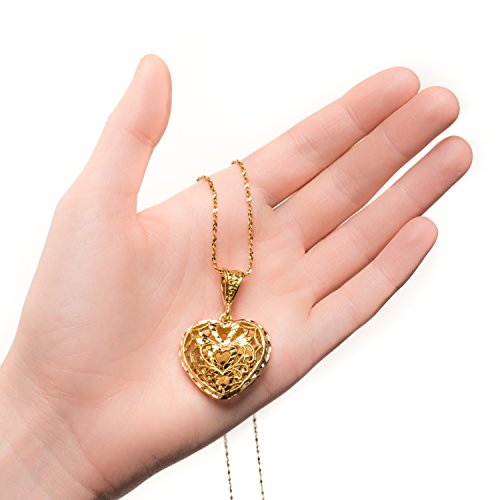 - Feature : Filigree Heart Pendant Necklace 20". 100% UNCONDITIONAL FREE LIFETIME REPLACEMENT GUARANTEE ON ALL LIFETIME JEWELRY(TM)! In business since 1978! / ►Real 24 Karat gold, laid over a heart of semi-precious metals, Tarnish Resistant. 20mls of 24 karat gold per chain - 10 times more gold than in the cheaper electroplate that changes color quickly. BEWARE OF CHEAP IMITATIONS! LIFETIME WARRANTY GUARANTEED ONLY WHEN SOLD BY LIFETIME PRODUCTS GROUP! / ►Trade secret special SEMI-PRECIOUS alloy of the best bonding metals ensures the LOOK OF SOLID GOLD and LONG LIFE of each fashion jewelry heart diamond pendant / ►Crazy low Amazon introductory prices for a limited time only! Excellent Customer Service! Ideal for men, women, teens. Makes a great GIFT (comes in a small Gold cotton filled gift box) / ►We only use 24k GOLD (THE PUREST form of gold) instead of 10k or 14k! No cheap metals like steel, copper (turns green) or nickel (toxic) as a base