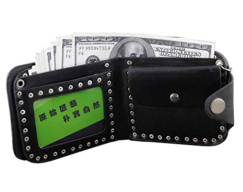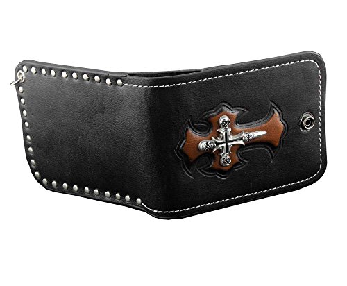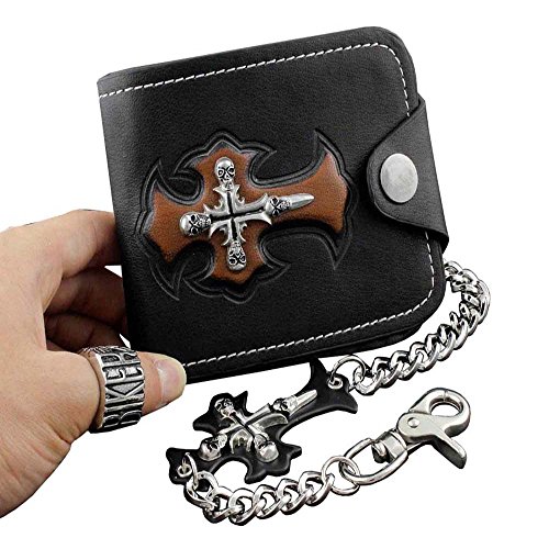 -. Title : Mens Rock Punk Metal Cross Skull Money Black Leather Zipper Wallet With A Chain