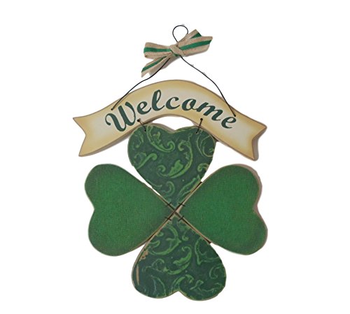 Textured Lucky Four Leaf Clover Wood Welcome Sign Hanger