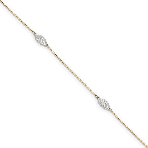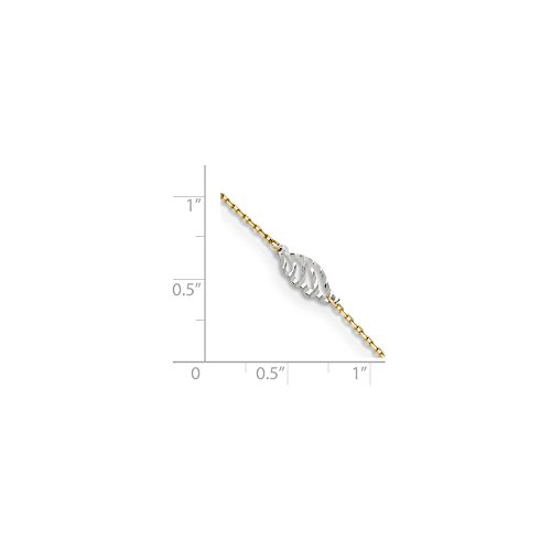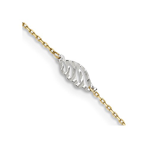 14K Two-Tone Diamond-cut Polished Leaf w/ 1 ext. Anklet. Material: Primary - Purity:14K|Finish:Polished|Chain Length:10 in|Clasp /Connector:Lobster (Fancy)|Extender Length:1 in|Feature:Semi-Solid|Manufacturing Process:Stamping|Material: Primary:Gold|Product Type:Jewelry|Jewelry Type:Anklets|Anklet Type:Themed|Material: Primary - Color:Two-ToneFeature
