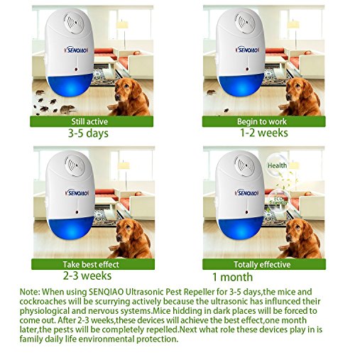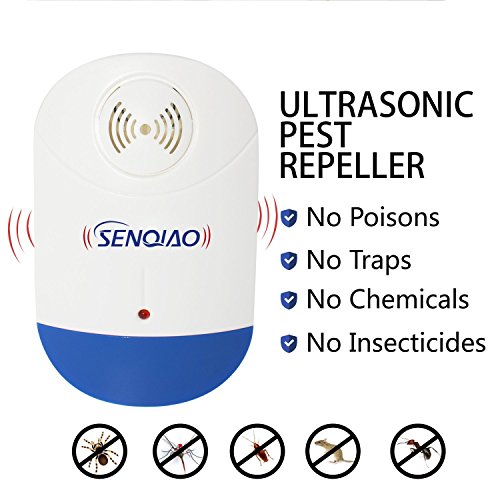 SENQIAQ Pest Control Ultrasonic Repeller uses low frequency(25kHz - 55kHz) sound waves to repel away mice, cockroaches, rodents, spiders, ants and rats from your home. None are immune to the sound and all will leave after 3 weeks of use.