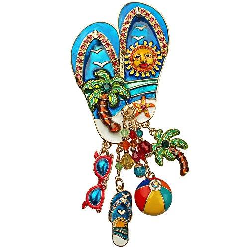-. Feature : It's your life! Live it your way! / Flip flops, sun, palm tree, beach ball, sunglasses and the beach. It's got it all! / Original hand made and hand enameled three-dimensional wearable art brooch / Measures approximately 4.75" x 2" / Created by Esme Hecht - Original Creator and Designer of Lunch at The Ritz(TM)