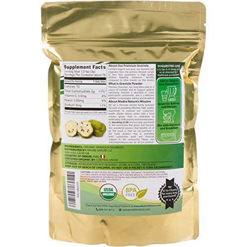 -. Title : Madre Nature - 100% Peruvian Organic Raw Graviola Powder - non-GMO - Vegan - Gluten Free