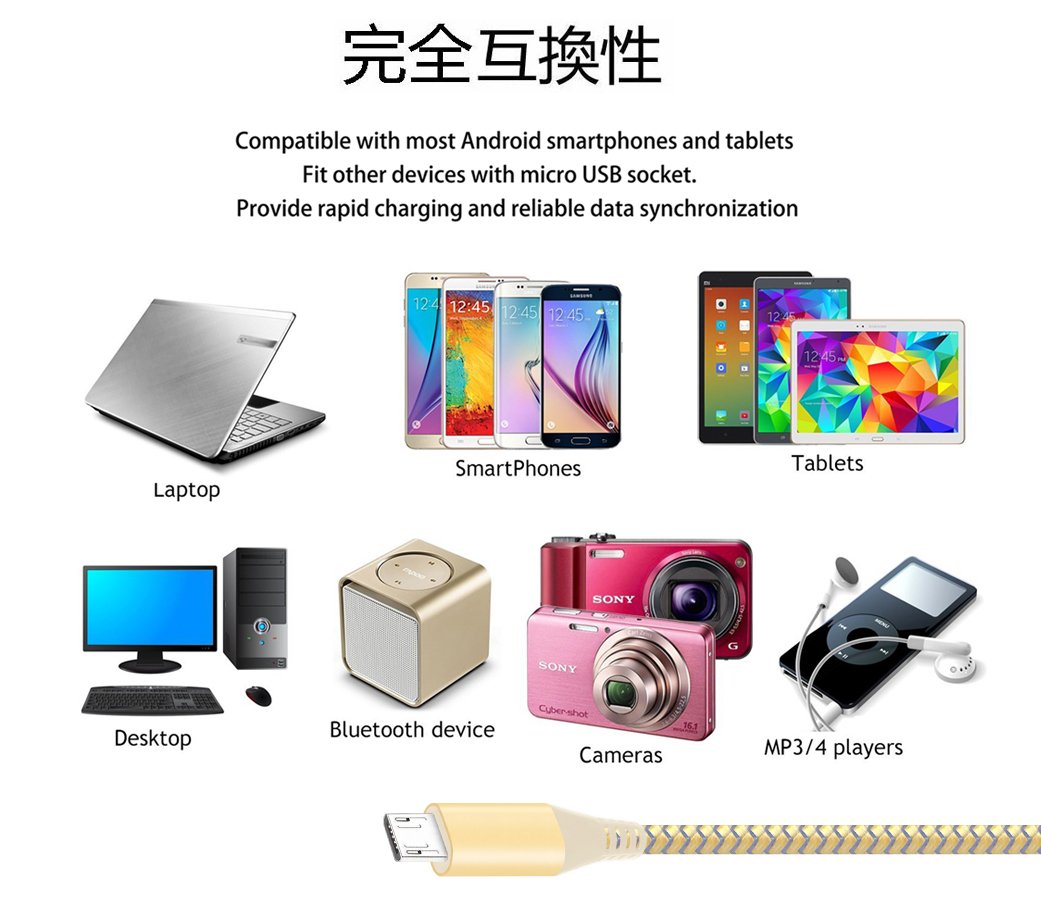 Excellent Micro USB cable perfectly supports high efficiency data transfer and fast charging