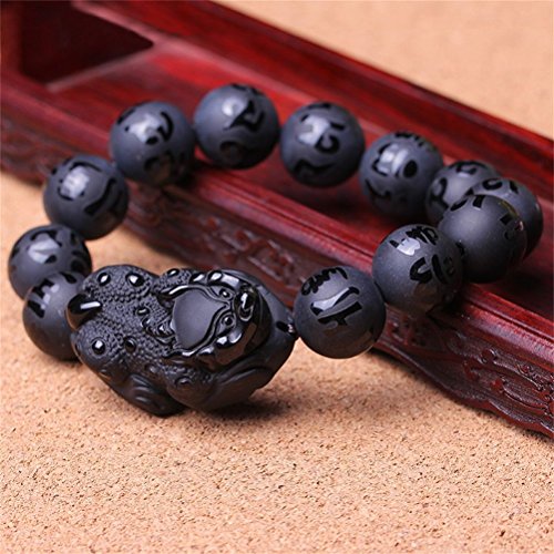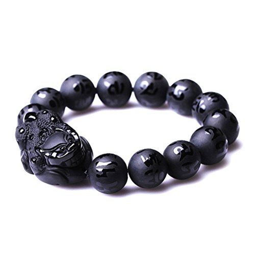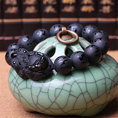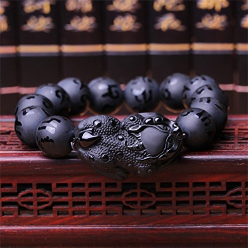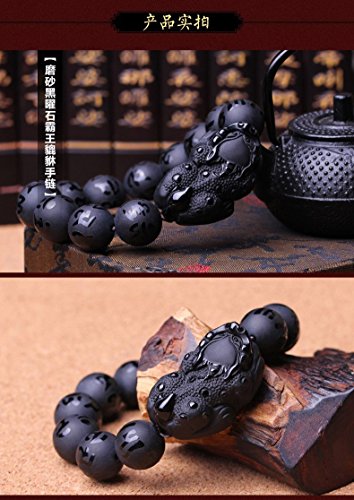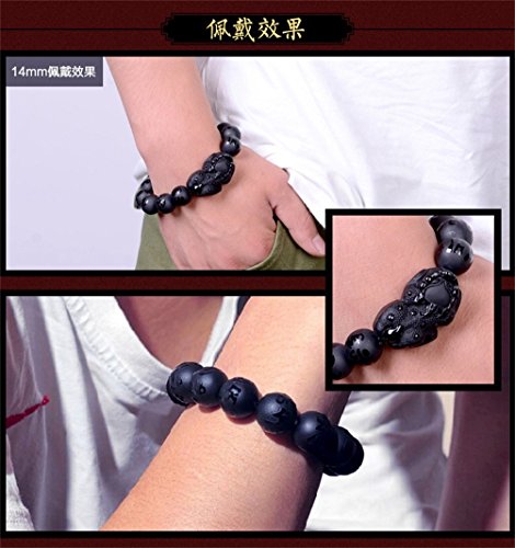 KOREA-JIAEN Pixiu Brecelet 16mm Natural Obsidian Bead Brecelet Bangle (16mm Bead, A)