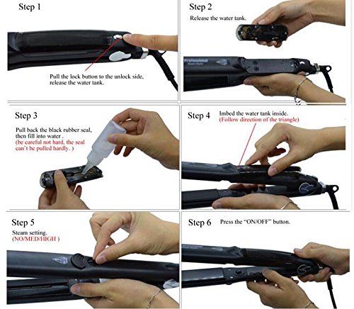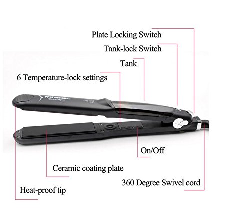 Advanced steam technology: Releases a controlled steam jet through its adjustable steam outlet within 60 seconds of heating. This conditioning steam locks natural hair oil and helps add moisture and gloss to hair, while decreasing damage.