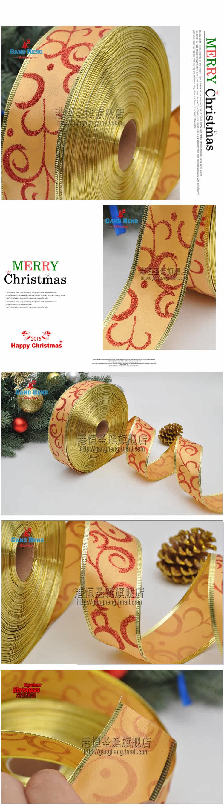 港恒圣诞树装饰用品 200cm金色色丁布烫印圣诞织带/圣诞丝带 10g