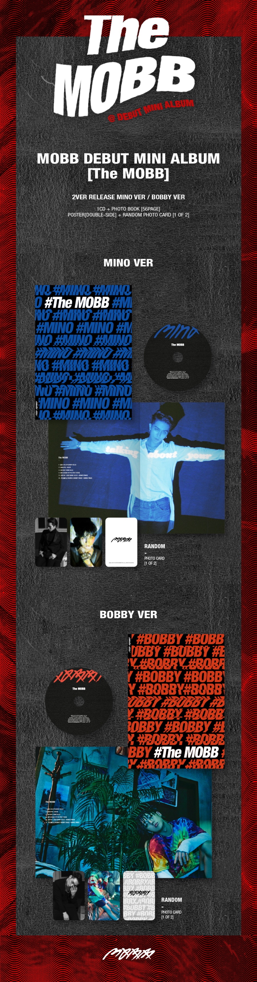 DEBUT MINI ALBUM[The MOBB]はMINO VERとBOBBY VER 2種で発売され、今年は9月9日から予約販売を開始して9月23日、YGこのショップをはじめ全国のオン/オフライン向けアルバム売場で会ってみることができる。