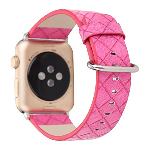 -. Feature : Compatibility: Fit for 38mm Apple Watch Series 3/Series 2/Series 1/+/Sport, all versions, Suitable for 5.9"- 8.1"(150mm-205mm) wrist / Premium leather: Made of high quality genuine leather, gurantee a comfortable touch feeling on your wrist, anti-slip & sweat-absorbent / Adjustable Length Strap: Designed with enough holes for length control, freely adjust length to fit your wrist, measure wrist before purchasing / Adapters: Equipped with watch lugs on both ends, easy to install, the adapter is sturdy enough for daily abrasion and will not fall apart easily / Solid Clasp: The classic pin-buckle closure is made of stainless steel, strong and durable, the tight loop hold the excess band in place neatly