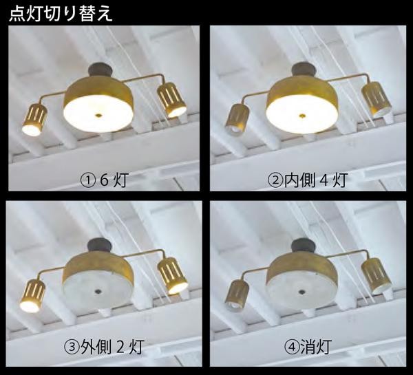 | 仕様 | 電球:E26/60Wまで(6個)※別売 取付方法:引掛けシーリング 点灯:リモコン(単4電池×2/テスト電池付属) 点灯パターン:6灯/内側4灯/外側2灯/消灯 ※調光器非対応 |