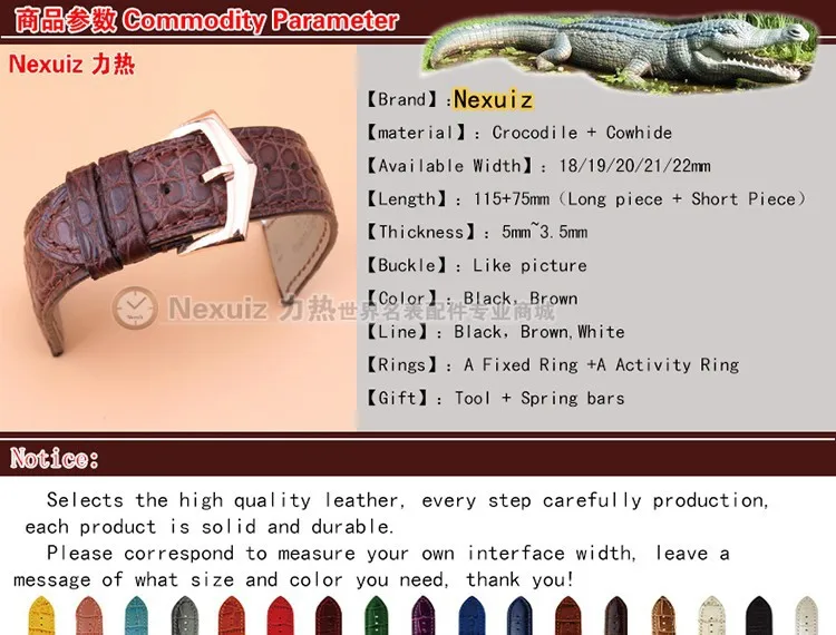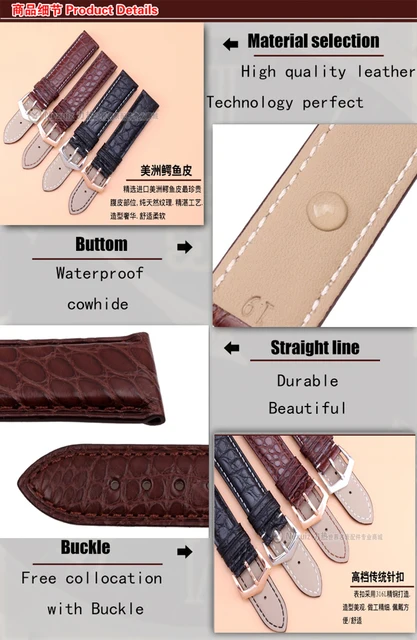 19 mmCrocodile 가죽 + 이탈리아 송아지 피부 정품 가죽 시계 스트랩 손목 브랜드 일반적인 배포 걸쇠 무료 shipipng