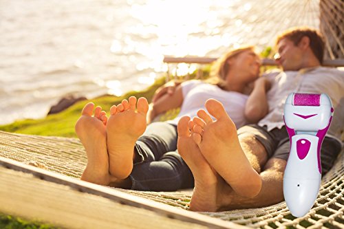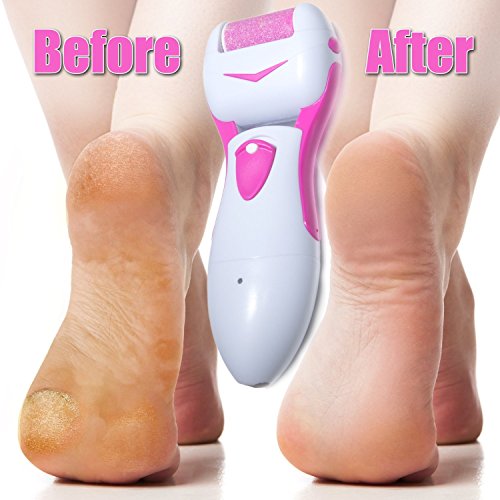 Feature : 2 GRINDING ROLLERS: Your new callus remover comes with not just one, but 2 powerful micro mineral coated rollers which spin 360 degrees to smooth dry, rough, and callused skin quickly and easily, as well as a cleaning brush for the roller heads. / PROFESSIONAL RESULTS AT HOME: Forget about spending money and time at overpriced salons. With our callus remover and manicure tool, you have everything you need for a professional manicure and pedicure in the privacy of your own home / AVE MONEY AND SAVE THE ENVIRONMENT with the Rechargeable callus remover. When it is fully charged, this callus remover can be used continuously for over 30 minutes. The unit can even be used while recharging. Stop wasting money on batteries, and stop wasting time searching in junk drawers for fresh batteries! Manicure tool requires 2 AA batteries for operation. / OUR WATERPROOF DESIGN allows you to use the remover while your feet are wet or dry. Additionally, you can simply rinse the unit for cleaning. Note: Do not rinse the unit while the unit is connecting to the power outlet. / FINISHING TOUCHES: No manicure or pedicure is complete without shapely, buffed, and polished nails. Our manicure tool includes 5 essential grooming tips for shaping, buffing, and smoothing nails, as well as a diamond cone for removing small calluses, and a small grinder for cuticle care. Both the electric callus remover and the nail tool feature ergonomic, smaller sized handles, which are easy to grasp and hold during use. You don't need to worry about losing your grip during operation!