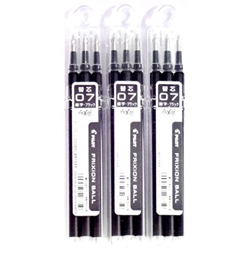 -. Title : Pilot Frixion Gel Ink Pen Refill 07, Black(LFBKRF30F3B), 0.7mm, 3 Refills X 3 Pack/total 9 Refills (Japan Import) [Komainu-Dou Original Package]
