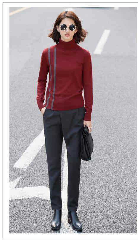 在冬日造型中套一件高领毛衣,