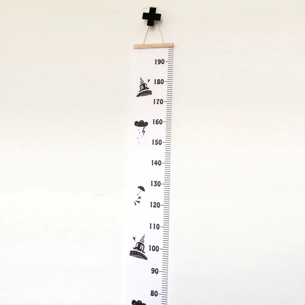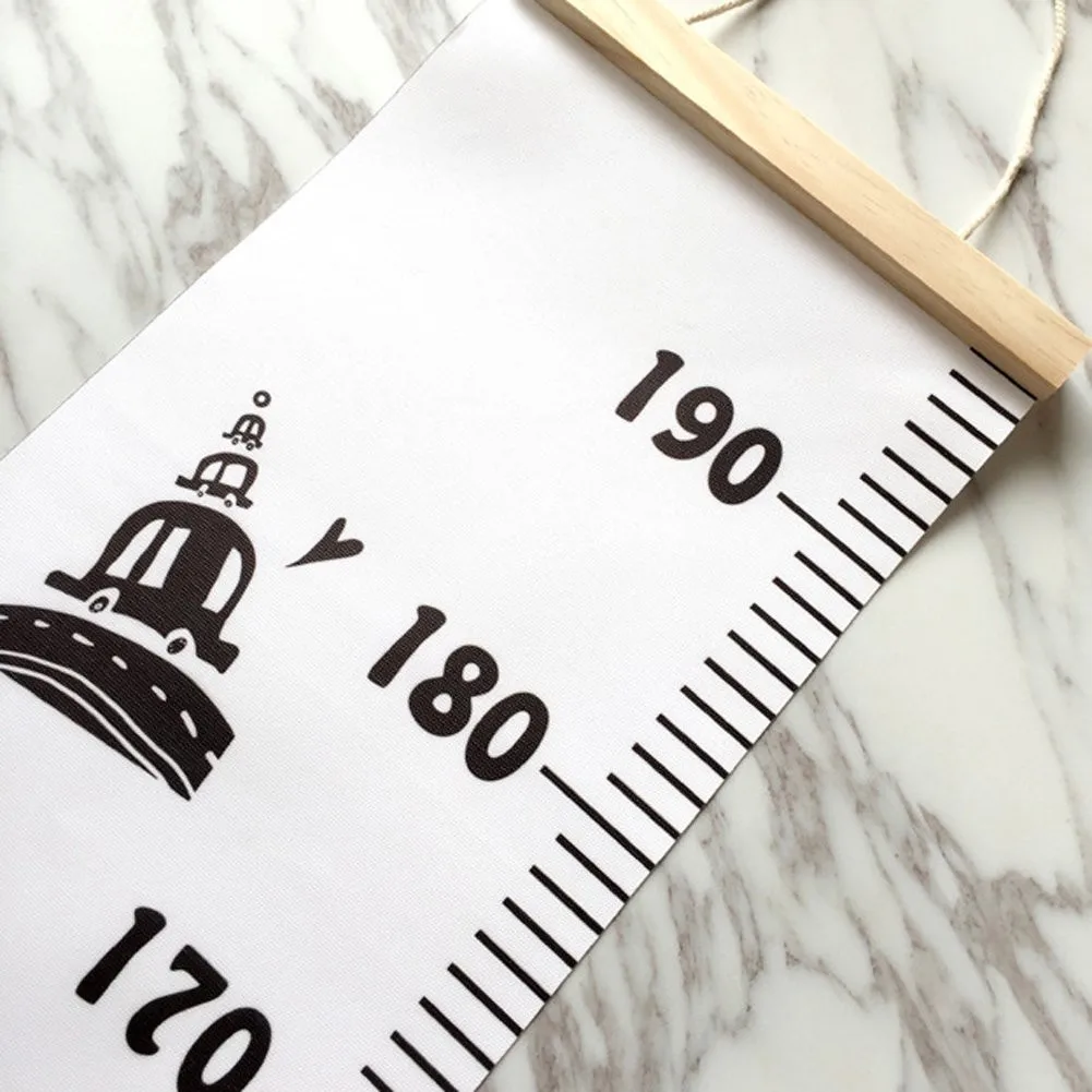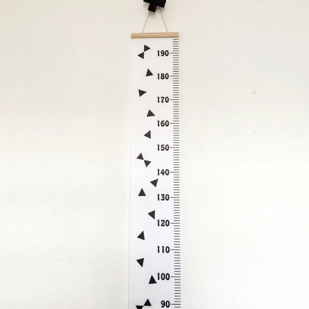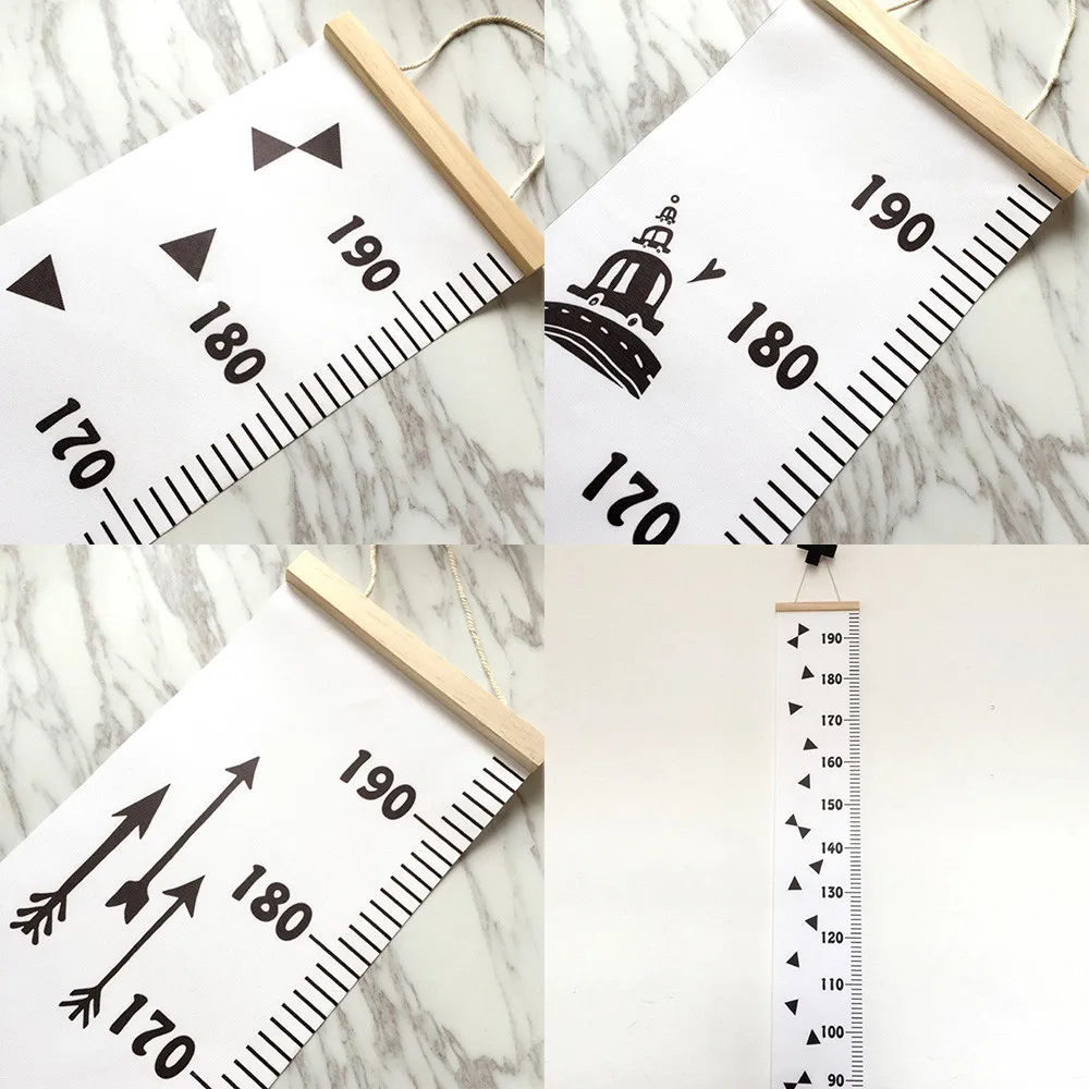 - As the kid grows quickly, you need a growth chart to track his height. This canvas chart may be suitable for you. Brief color and style with 2 scales, easy to see the detail clearly. Made of wood and canvas cloth, safe and environment friendly. Total length is 79'', almost every member could use it to measure the height. What's more, it's all matched with furniture and wall for it's brief and modern style. It's not only a grwoth chart, but also a popular home decoration.