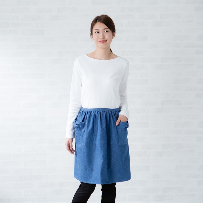 데님 원단의 쇼트 에이프런입니다.