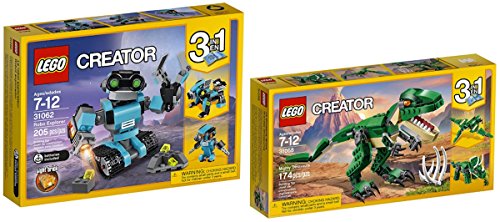 -. Feature : Enjoy A Bundle Of L.E.G.O Creator Sets With Both The Robo Explorer And Mighty Dinosuars / L.E.G.O Robo Explorer Has A Rotating Body And Head With Bright-green Eyes, Working Rolling Tracks, Working Claws And A Searchlight That Uses A Light Brick / L.E.G.O Mighty Dinosaurs Includes A T-Rex With Large Claws, An Opening Mouth With Pointed Teeth, And Bright-orange Eyes / Creator 3 in 1 Robo Explorer: Robot With Tracks, Robot Dog, and Robot Bird / Creator 3 in 1 Mighty Dinosaurs: Fierce T-Rex, Triceratops, and Pterodactyl