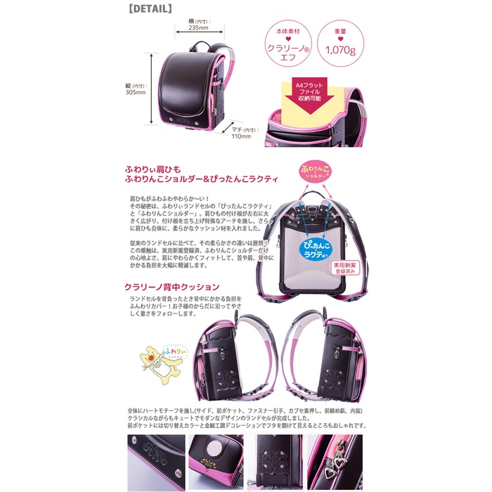 원본상품명: ランドセル 女の子型落ちふわりぃ2016年 ふわりぃ コンパクト クラシック ワイド ランドセル ?量1,070g 03-06300 特典付ランドセルカバ?D202P05Nov16