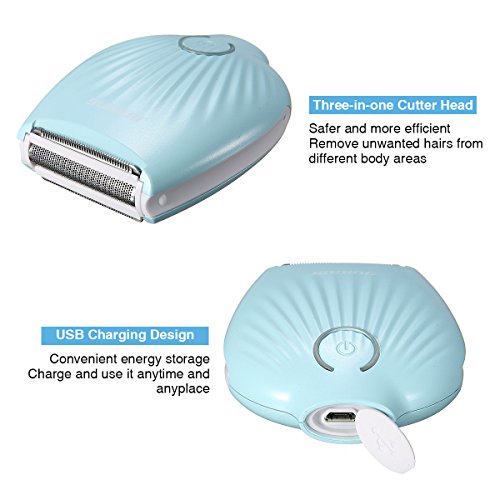 Studio : LUCKYFINE Publisher : LUCKYFINE Binding : Misc. Product Description Specification: Color: Blue Body Material: ABS Blade Material: Stainless Steel Charging and Using Time: 2 hours, at least 120 minutes Size: 7.5 * 6.5 * 7.5cm Output Voltage: AC100-240V Current: 0.4A Power: 3-5.5W Built-In Lithium Battery: 3.7V 400mAh output DC10V Temperature: 35 degrees Ambient Temperature: 5-30 ¡a C Ambient Humidity: 30% -80% relative humidity Features: 1.Wet dry use for maximum convenience, easy for clean. 2.Shell-shaped handle design, provide a close shave and more gentleness in different body areas. 3.3 in 1 flexible trimming system, safer and more efficient. 4.Have the function of the electricity protection and low battery warning. 5.Remove unwanted hairs from legs, face, underarms, bikini line and other sensitive areas. 6.Use universal global Micro USB, charge the shaver anyplace and anytime. Caution: 1.Children should be supervised to ensure that they do not play with the appliance. 2.Do not use the appliance on irritated skin or skin with varicose veins, rashes, spots or wounds. 3.Ensure that the appliance is switched off when cleaning or charging. Package Included: 1 X Lady Shaver 1 X Protective Cap 1 X Cleaning Brush 1 X Storage Bag 1 X USB Cable 1 X English Manual 1 X Packing Box