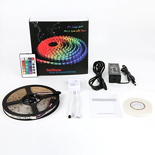 Dear customer Thank you for purchasing multi color remote LED Strip Light in DotStone shop. For optimum performance and safety, please read these instructions carefully before connecting, operating or adjusting music led RGB ribbon lighting. If you are not 100% completely satisfied. Please feel free to contact us. Our worry-free 18-month warranty and friendly customer service. Feature & Specifications: 5050 led rgb music lights can change color with the music,can be indoor,outdoor seasonal string lights.