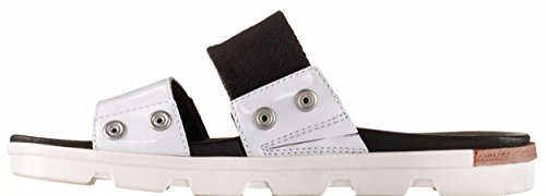 Binding : Apparel Product Description fabric-and-leather fabric-and-leather This make-a-statement slide has a fresh, avant-garde and energetic vibe. Shiny patent leather and bright cotton webbing bands comprise the upper, while molded EVA footbed and spongy rubber outsole make for one comfortable ride. 0