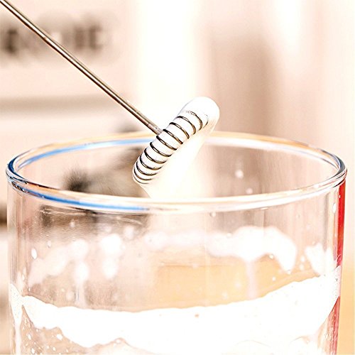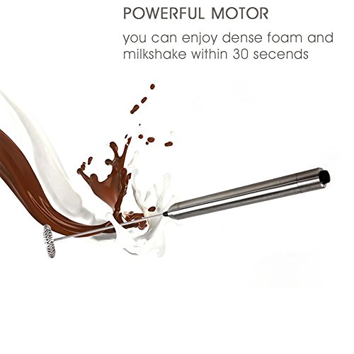 EASY TO OPERATE USING AN ON/OFF SINGLE BUTTON: stainless steel milk frothers wand do a very good job by depressing the button it will give you an amazing froth, with very little effort. It takes about 20-30 seconds of pumping action. Battery operated frothers generally aerate by rotating a whisk-like rod (and can also be used for light egg beating eggs and for mixing drinks), it is a convenient method of frothing right in the cup or other container.