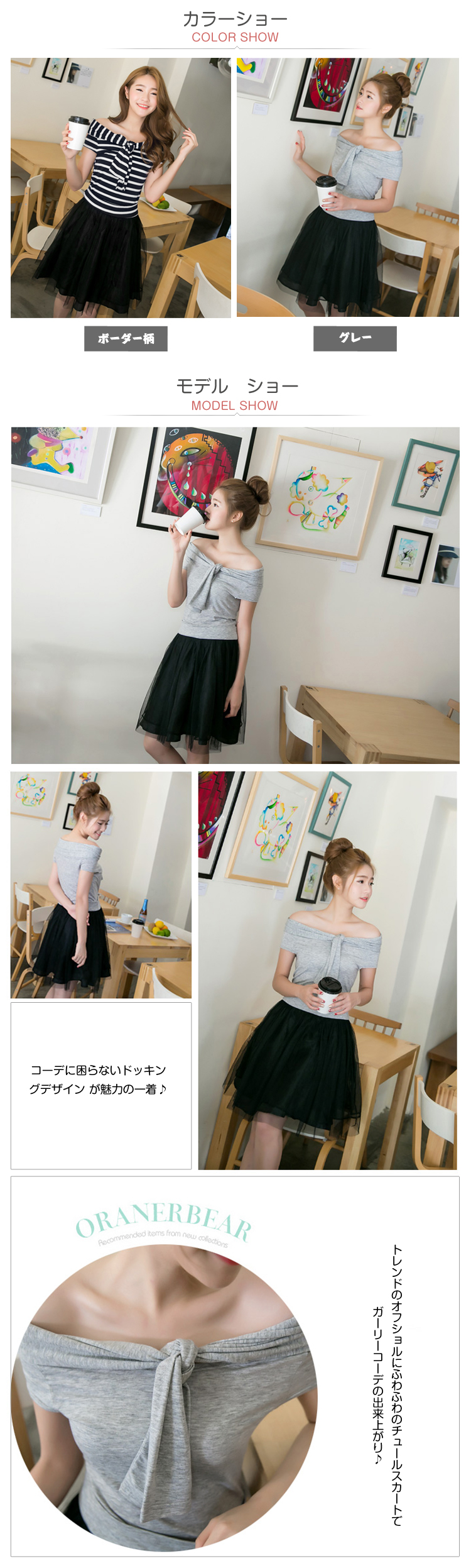 | オフショルダー×チュールスカートのドッキングワンピのお目見え☆コーデに困らないドッキングデザイン が魅力の一着?トレンドのオフショルにふわふわのチュールスカートでガーリーコーデの出来上がり?程よいFit感のあるリボン付トップも、ストレッチ素材なので伸縮性に優れ、リラックスした着心地が叶います◎メリハリのあるシルエットで女の子らしいラインもしっかり演出してくれちゃう?お出かけにもデートにも大活躍する こと間違いなし! | |