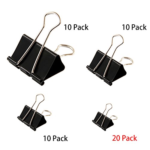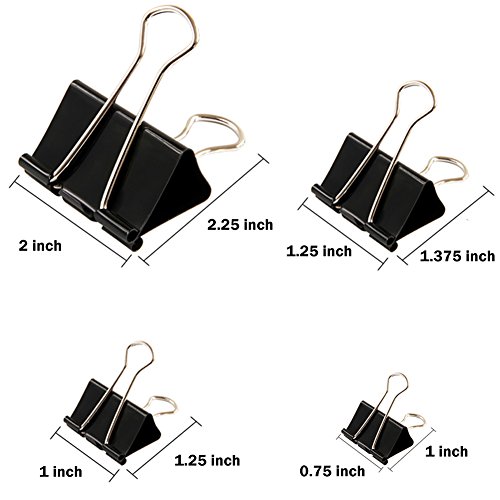 SIZE - 4 Sizes binder slips, 2 inches (10 pack) , 1.25 inches (10 pack) , 1 inch (10 pack), 0.75 inch (20 pack), assorted size binder clips can meet your different using needs