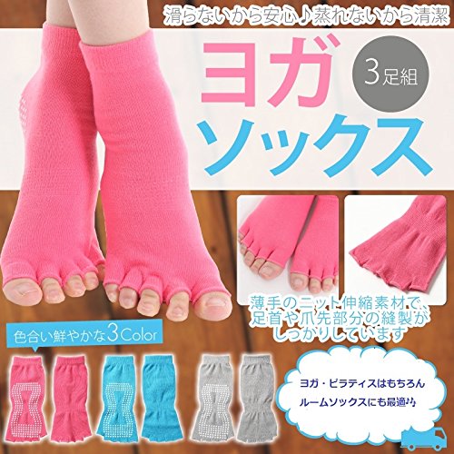 NJIS 【okapis-f】요가 삭스 3켤레조(핑크그레이블루) 5개 손가락 삭스 양말 발끝 없음 미끄럼방지부 요가 필라테스 레이디스 삭스