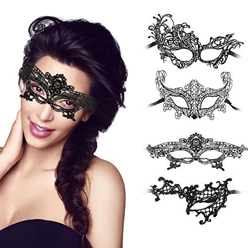 -. Title : ALLOMN 4pcs Black Women's Masquerade Ball Lace Eye Mask for Halloween Carnival Dancing Party Ball Fancy Dress Costume Party
