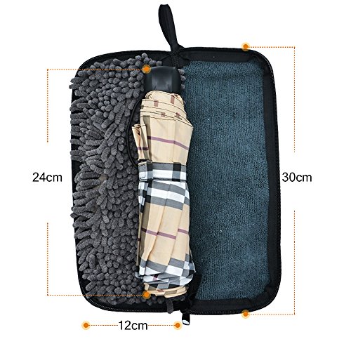 -. Feature : 【抜群な吸水性】内側全面は水分吸収に優れたマイクロファイバーとシェニール織物を採用!傘についた水滴をすばやく吸い取ってくれます,大きく開くファスナーで濡れた折り畳み傘の出し入れが簡単にできます。 / 【撥水ファスナー 】外側の高密度のオックスフォード生地は撥水性が高く、防水ファスナーが採用されるので、吸収した水分は外側に滲み出にくいです,水滴がちっとも漏れません。 / 【多用途に使える】服やかばんの中に濡らさずに傘を収納することだけではなく、ケースの生地を裏返して、吸水性を活用して車や窓などの濡れた所を拭くこともできます。また外部のサイドポケットには小物を収納することができます。 / 【収納が便利】折りたたみ傘が濡れたまま収まる超吸水傘ケース。屋内に入る時、公共交通機関に乗る時、バッグの中に入れておけば大変便利です!使用後はカバーを開いてめくり、内側のマイクロファイバーを外側にし、吊して干して、よく乾燥させてください。 / 【ご注意ください】傘カバーとなり、傘は付属しておりません。(傘は別で購入となっております。) 32cm×12.5cm×2cm、重量56g  ご注意ください:Flinelifeからご購入の場合、メーカーの1年保証が付いています、メーカー1年保証期間内の故障は、当社に連絡を下されば責任を持って対応致します。