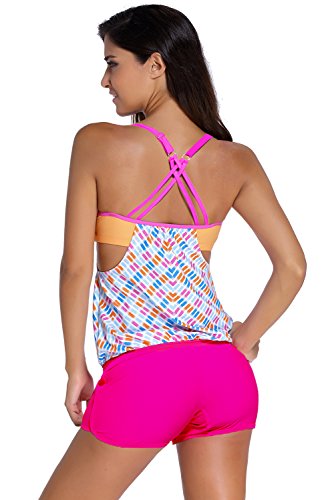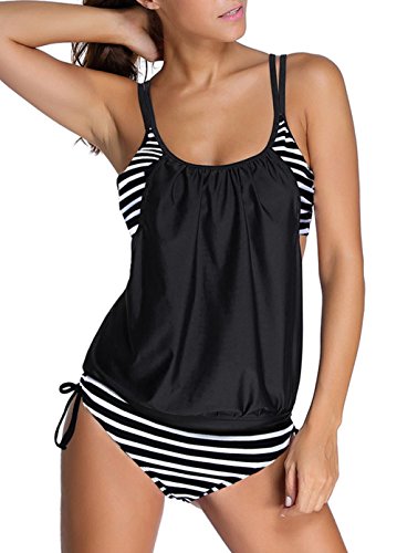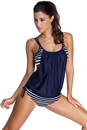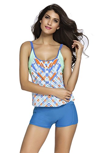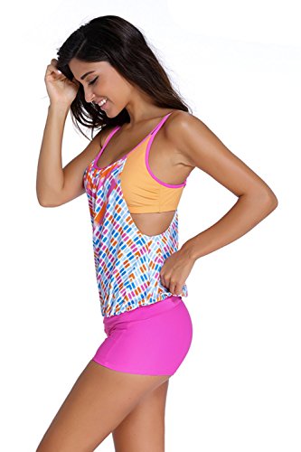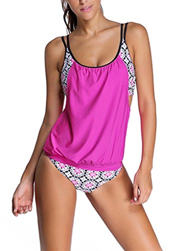 | Sidefeel Women Push Up Tankini With Panty Two Pieces Swimsuit Set |