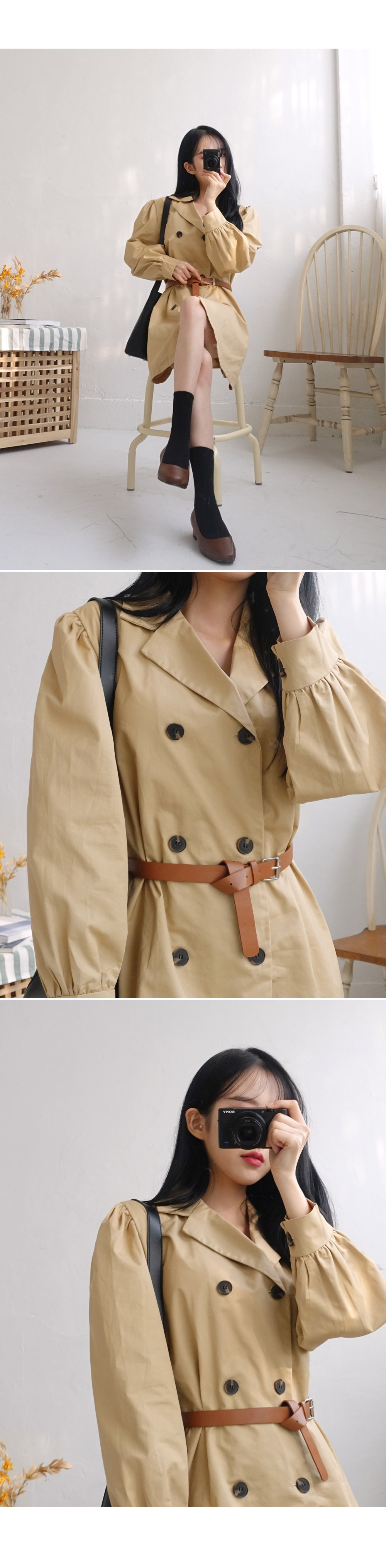 '색감이 정말이쁜 볼륨 트렌치 원피스'