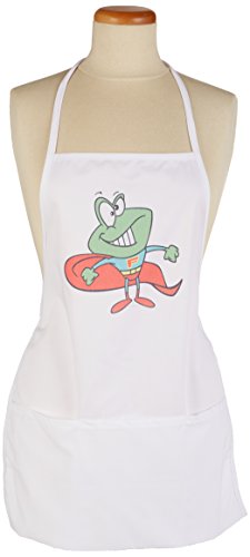 3dRose apr_104387_2 Silly Superhero Super Hero Frog-Medium Length Apron with Pouch Pockets, 22 by 24-Inch