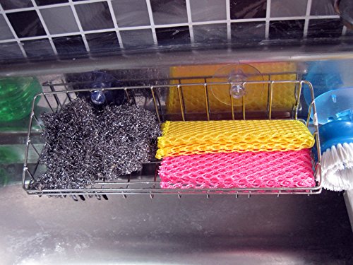 LARGE STAINLESS WIRE NET DISH WASHING SPONGE SUCTION CUP HOLDER SCRUBBER SINK RACK