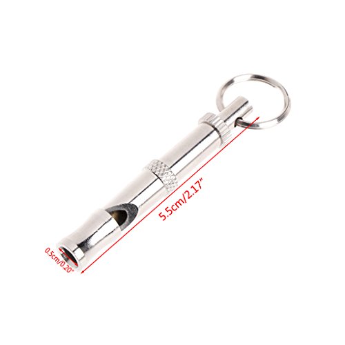 Features: Some tips to use the dog whistle: Adjust the pitch blow the whistle to your dog. Even dogs can't hear all frequencies. Wait until he is asleep and gently blow on the whistle. Your whistle has a nut and screw that adjust the frequency when turned. Continue testing until your dog perks up. You will then know you have reached a frequency he can hear. Use the dog whistle with varying sequences to train your dog. For example, one long burst can mean 'come,' while a series of short, staccato bursts might mean 'sit.' Keep your whistle commands consistent and your dog will always know what you expect of him The dog's behavior according to your instruction need to be trained. Such as, at meal time, blow on the whistle before they get the food. It will only take a few times of doing this and your dog will react quickly. Specifications: Material: Alluminum Color: Silver Length: 5.5cm Hole Diameter: 0.5cm Quantity: 1 Pc Note: 1.Transition: 1cm=10mm=0.39inch 2.Please allow 0-3cm error due to manual measurement. pls make sure you do not mind before you bid. 3.Due to the difference between different monitors, the picture may not reflect the actual color of the item. Thank you! No Retail Package Package Contents: 1 Pc x Whistle Flute 0