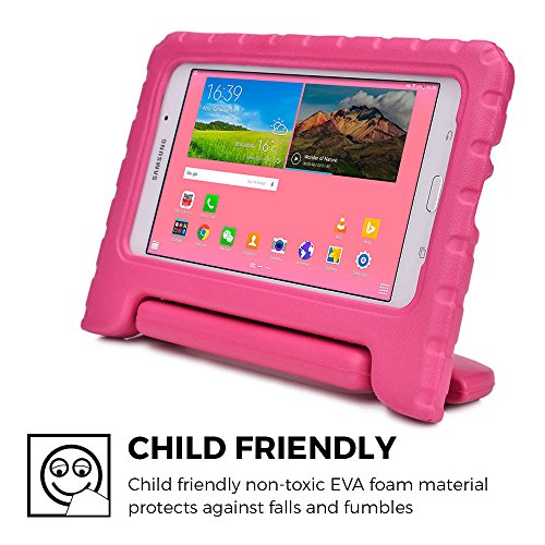 CHILDPROOF, HEAVY DUTY, RUGGED GALAXY TAB 4 8.0 PROTECTOR - durable rubberized 100% non-toxic EVA foam cushion for best shockproof protection. Innovative, unbreakable single piece bumper (easy to wash and clean) fully covers back of device. Raised bezel around screen edges protects from hard falls, shock and impact. Gives your Galaxy Tab indestructible armor body protection it deserves. Also included self-applicable clear screen protector for shatterproof tablet protection.