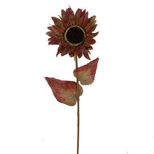 Admired By Nature Burlap Sunflower Stem with 2 Leaves for Home, Wedding & Office Decoration Arrangement, Tuscany, 27" H - 6 Pieces