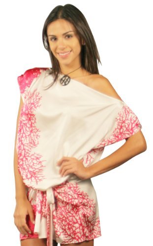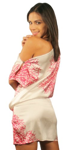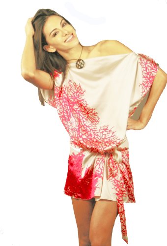 -. Binding : Apparel -. Brand : Luxxe® Slimming Apparel -. ClothingSize : One Size -. Color : Multi -. Department : womens -. EAN : 0819973012459 -. Feature : 100% Silk / Open Shoulder Dress/Tunic With Tie / Coral Reef Print, Wear As Dress or Top! / Beautiful For The Hot Coming Months! / Looks Amazing On Women Of All Sizes! -. ProductGroup : Apparel -. ProductTypeName : DRESS -. Size : One Size -. Title : Silk Beach Coverup Kimono Dress Tunic Cold Shoulder (Pink) Coral Print By Luxxe® -. UPC : 819973012459