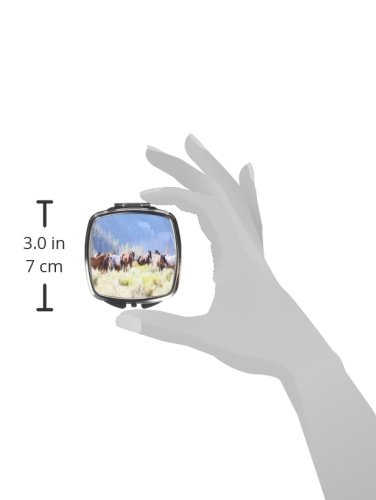 Rikki Knight Compact Mirror, Horses with Mountain Backdrop