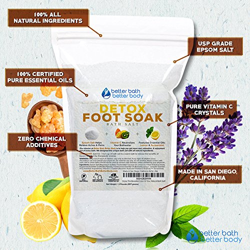 Detox Foot Soak 32oz (2-Lbs) Epsom Salt Foot Soak With Lemon, Peppermint, Frankincense, & Lavender Essential Oils Plus Vitamin C Crystals -...