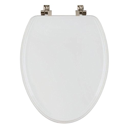 -. Feature : Durable molded wood with a high-gloss finish that resists chipping and scratching / STA-TITE Seat Fastening System never loosens and installs with ease / Stylish, secure brushed-nickel hinge accents bath hardware / Fits all manufacturers' elongated bowls / 18.5 in x 14.25 in x 2.125 in