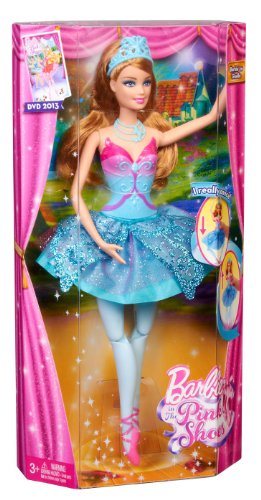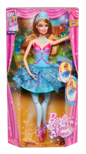 Barbie in The Pink Shoes tells the charming story of Kristyn Farraday, a lovely ballerina whose magical pink shoes take her into a fantasy world of ballet. During her adventure, Kristyn transforms into the ballet characters Giselle and Odette from the classic ballets Giselle and Swan Lake, respectively. With this Giselle doll, girls can recreate favorite scenes and dances and choreograph their own! To expand the ballerina playtime, also check out Barbie in The Pink Shoes Odette Doll (sold separately).