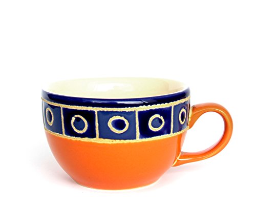 -. Feature : Hand Painted ceramic cup 8.1oz, Pattern: Aztec Orange and blue are the basic colors, (each piece is uniquely designed and the colors may vary slightly from the photo) / Microwave, Dishwasher and oven Safe, Lead & Cadmium Free Ceramics / Due to the nature of handmade ceramic and glaze, imperfections will occur, adding to the distinctive appearance. / Use for coffee, tea, hot chocolate, cider and more. This mug is a perfect gift for any occasion- birthdays, Father's day, anniversaries, secret santas, get well soons, weddings, etc. / Made in Ecuador since they were established in 1971.