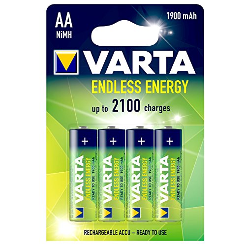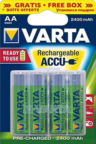 Varta Rechargeable Accu Ready2Use vorgeladener AA Mignon Ni-Mh Akku (4-er Pack. 2100 mAh) , wiederaufladbar ohne Memory-Effekt - sofort einsatzbereit