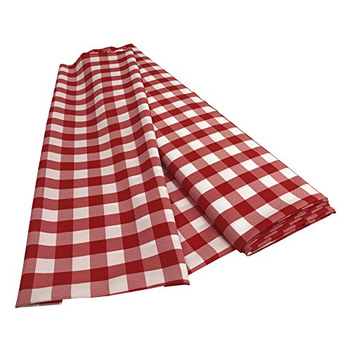 LA Linen 10-Yard Gingham Checkered Flat Fold Bolt, White and Red