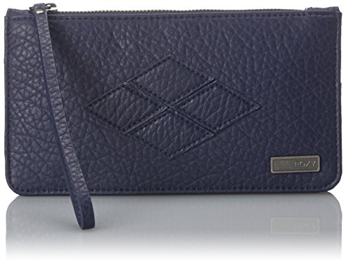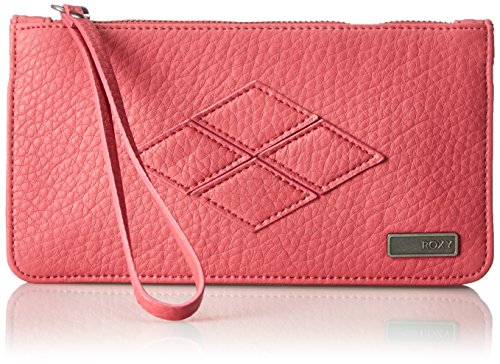 Faux-leather bi-fold wallet featuring diamond pattern appliques on front and top-zip pocket with wristlet pull